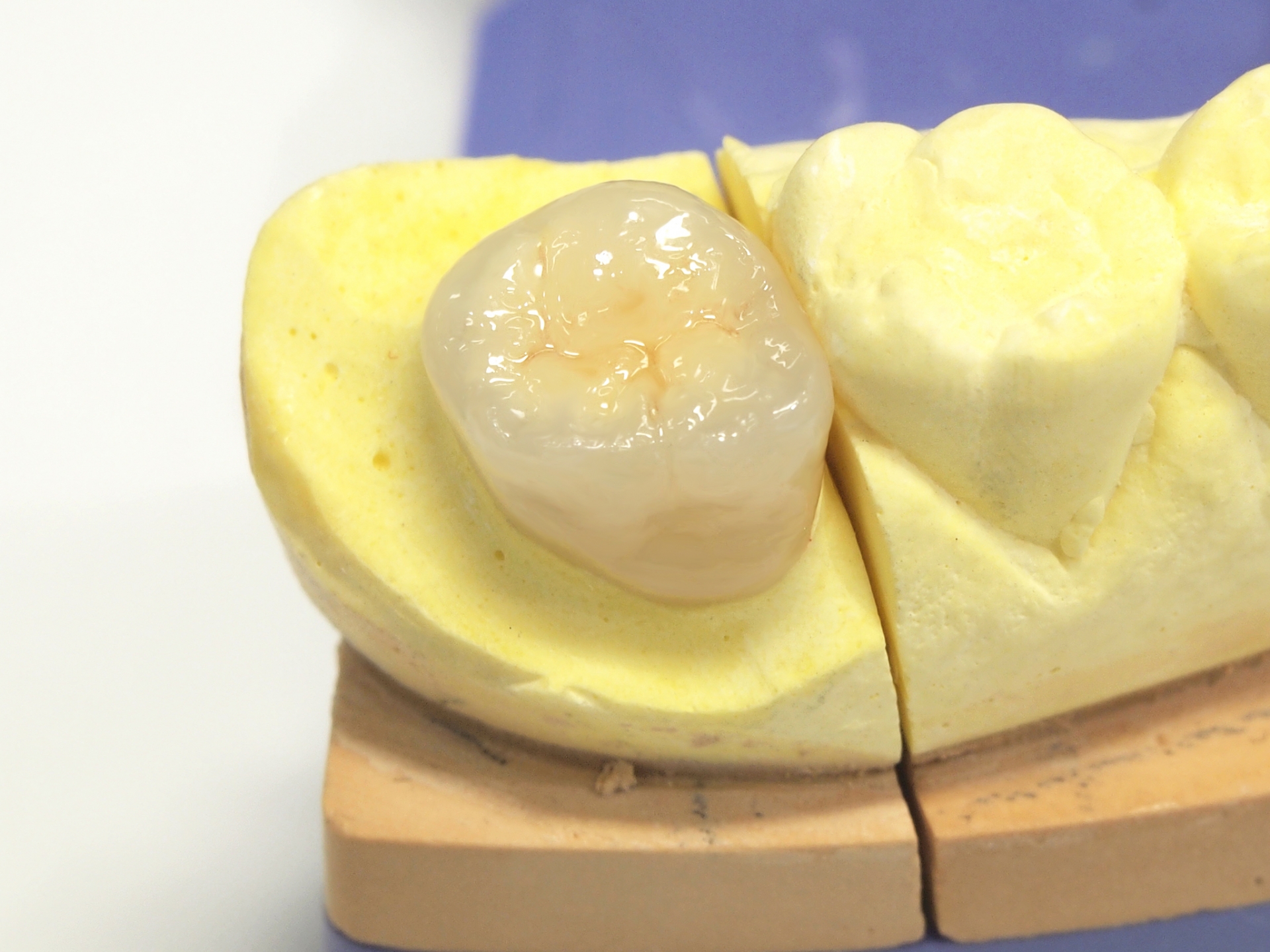 ファイバーコアとは、グラスファイバーと呼ばれるガラス繊維を芯材にして、樹脂で固めた土台のことです。耐久性があることに加えて、硬さやしなやかさは天然の歯と近いため、噛んだときの負担がかかりにくくなっています。また、ファイバーコアは光を透過する性質があるため、セラミックの被せ物を入れた際も本物の歯のような透明感を再現できるメリットがあります。